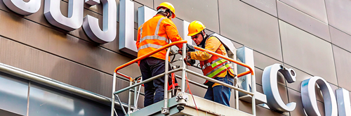 Информационные и рекламные вывески большого формата требуют использования спецтехники. Важно, чтобы установка проводилась на усиленные закладные детали, которые закладываются еще на этапе строительства или когда идет капитальный ремонт фасада. Если ваши рекламные вывески начинают деформироваться, необходимо незамедлительно вызвать специалистов, чтобы выполнить ремонт. Помните, что качественные вывески — это инвестиция в имидж, а их техническая исправность — залог безопасности людей. Качество материалов напрямую влияет на то, как часто вашим вывески будет требоваться обслуживание.