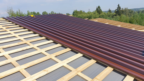 • после завершения основного покрытия устанавливаются дополнительные элементы: сначала монтируется карнизная планка для отвода воды, далее закрепляется торцевая планка для предотвращения попадания ветра под профиль. Для кровельного пирога можно использовать листы ОСБ на https://agrikol.com.ua/product-category/osb-harkov/.